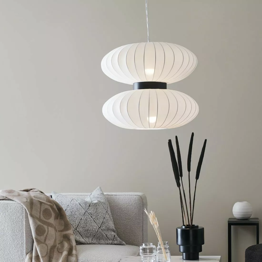 Taklampan Daburu är en vacker lampa med sina två ljuskällor. Lampan har en metallbas som är klädd med tyg vilket ger ljuset ett mjukt intryck i rummet den hänger i. Lampan passar perfekt i vardagsrummet eller i sovrummet. Glöm inte att köpa till två stycken ljuskällor.