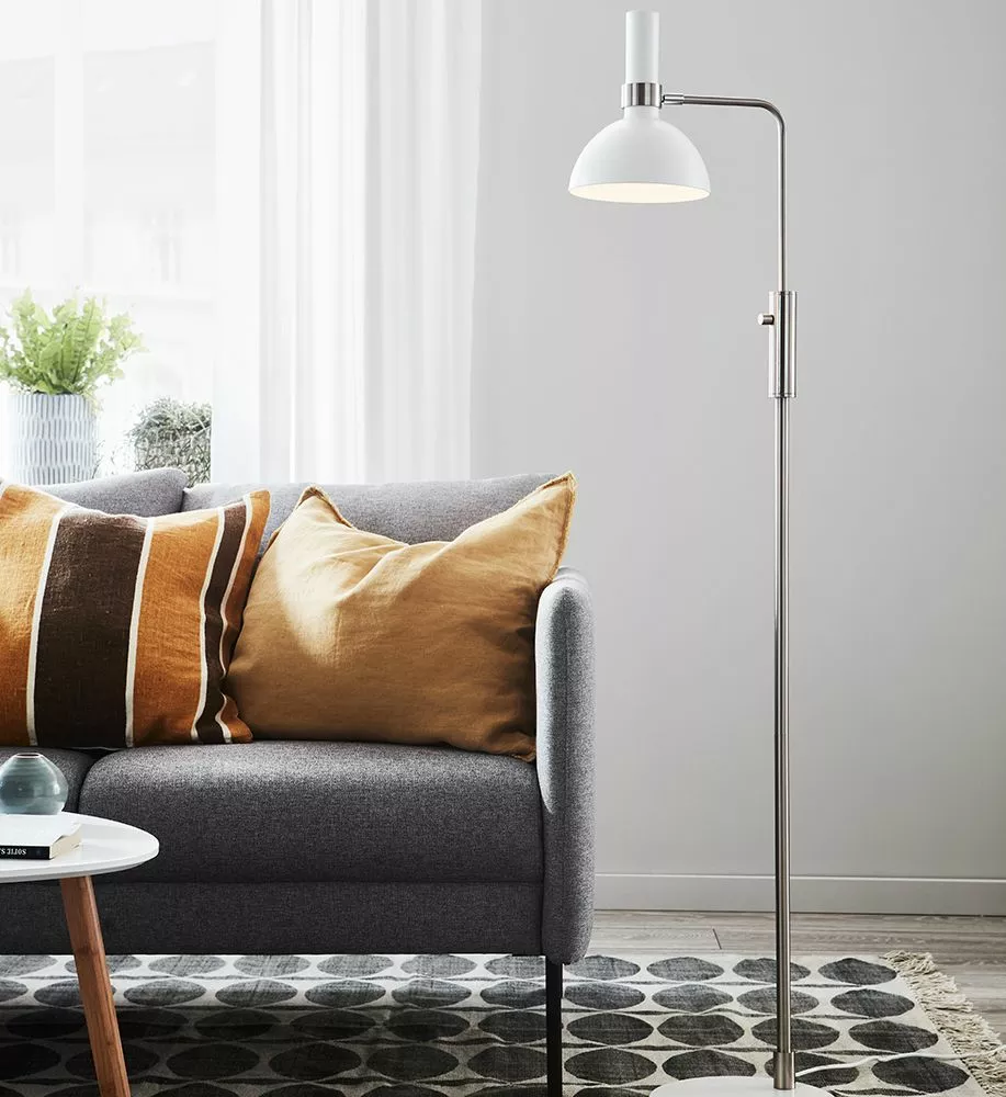 Golvlampan Larry i vit metall och stål är designad av Monica Mulder för Markslöjd. Golvlampan har en dimmerbrytare så att du själv kan bemästra ljusstyrkan från läsljus till mysstämning. Larry har en stilren design och placeras gärna i vardagsrummet vid soffans kant eller vid fåtöljen i läshörnan. För en modern känsla i sovrummet placeras en golvlampa direkt vid sängkanten.