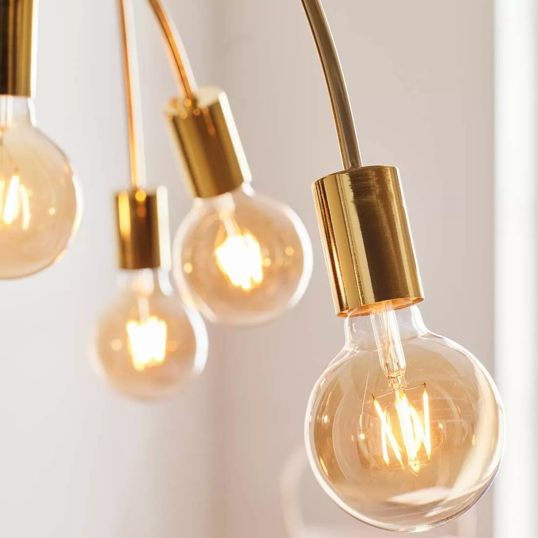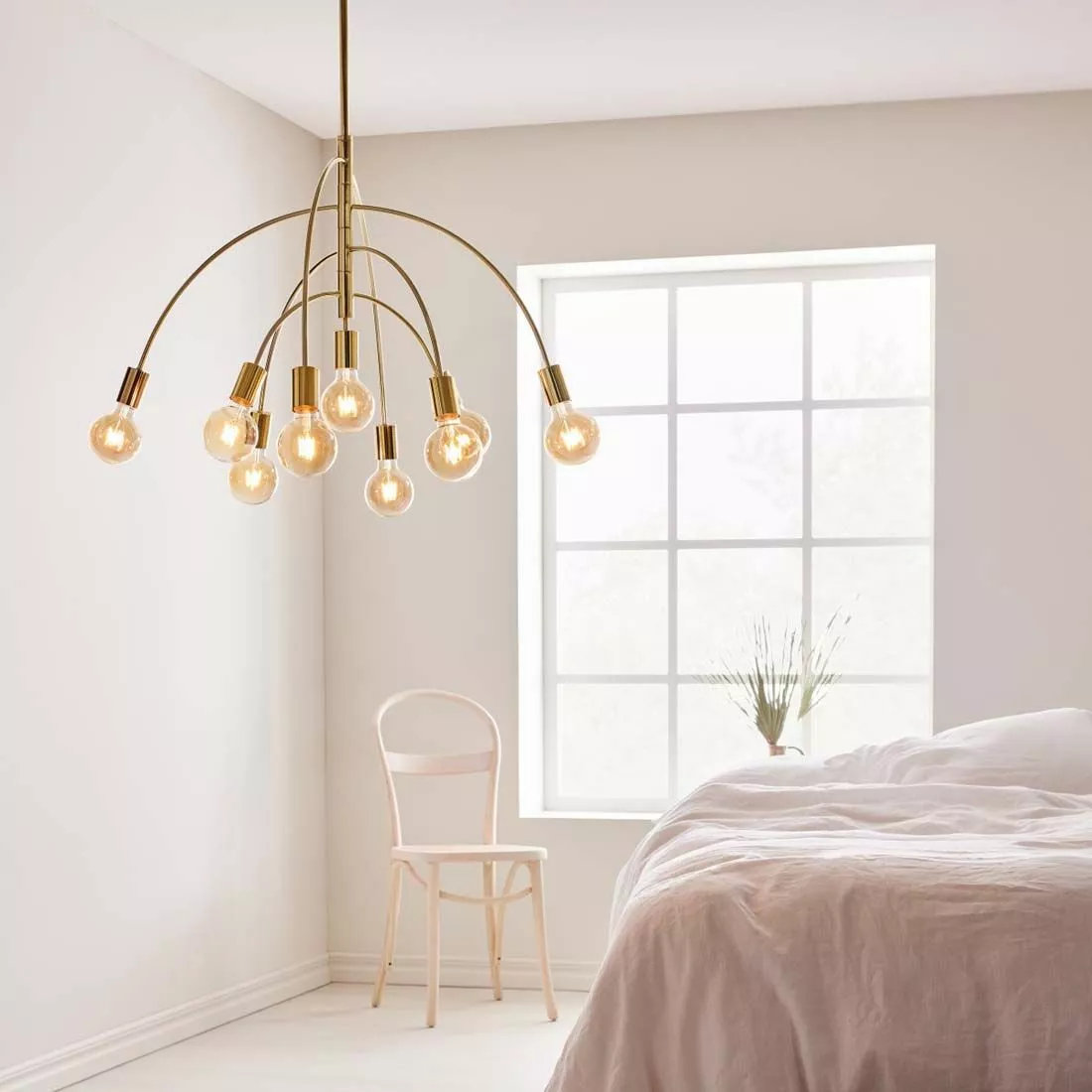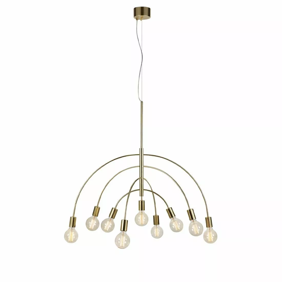 Lavello är en modern takkrona i mässingsfärgad metall med plats för nio st ljuskällor. Lavello från Markslöjd har en ståtlig känsla med sina nio hängande böjda armar. Lavello är en stor taklampa som passar över det större matbordet eller vardagsrummet och hänger gärna i rum med takhöjd.