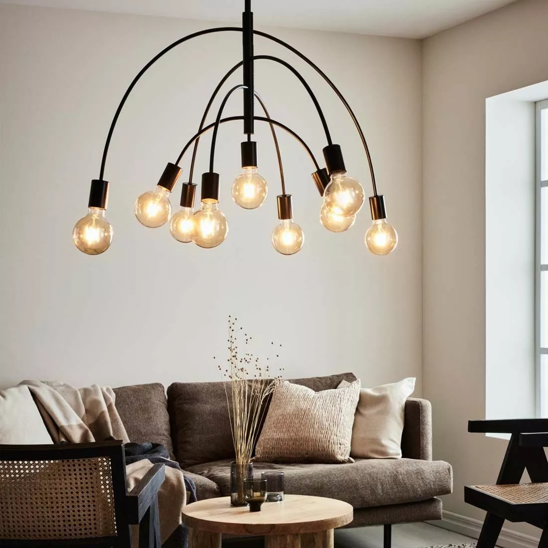 Lavello är en modern takkrona i svart metall med plats för nio st ljuskällor. Lavello från Markslöjd har en ståtlig känsla med sina nio hängande böjda armar. Lavello är en stor taklampa som passar över det större matbordet eller vardagsrummet och hänger gärna i rum med takhöjd.