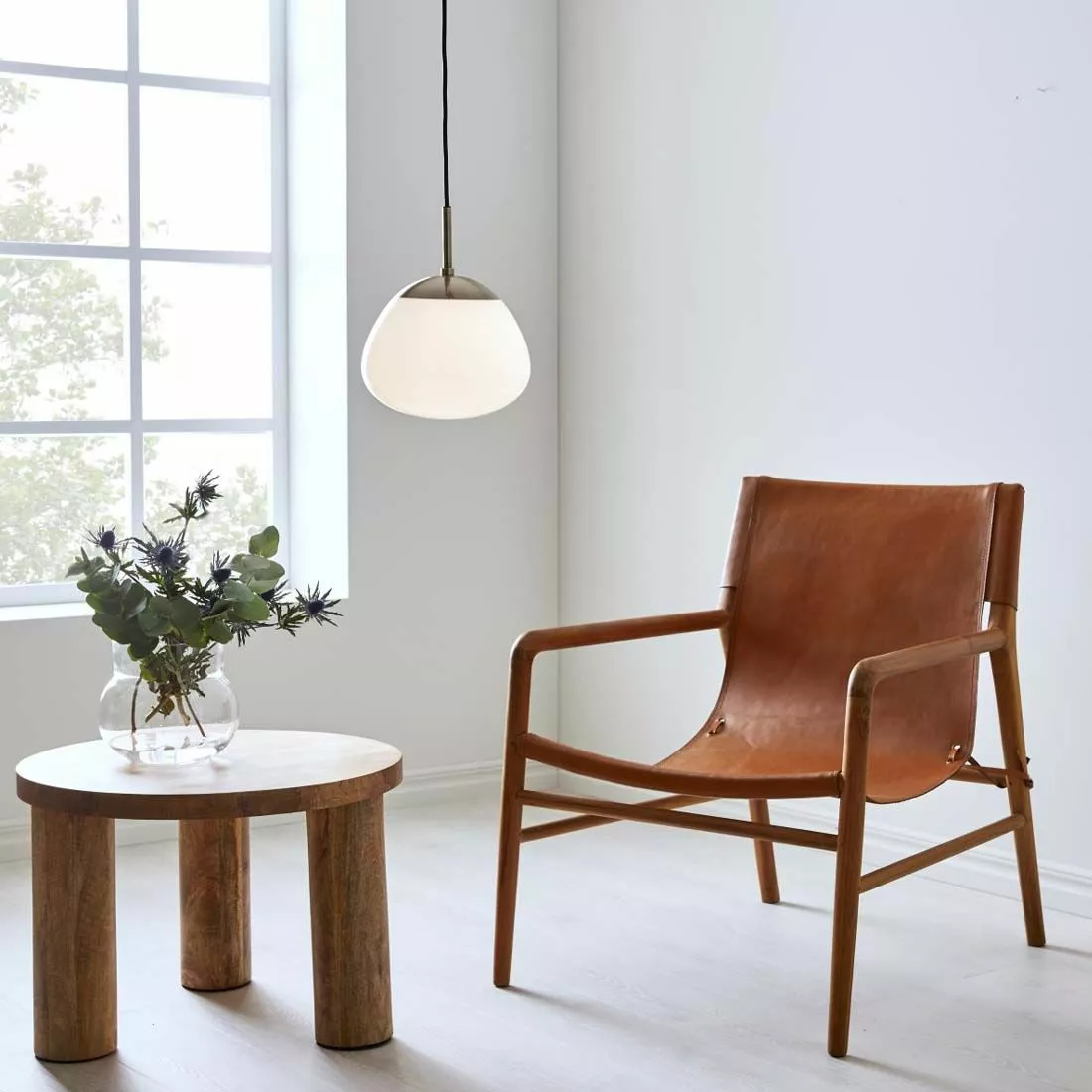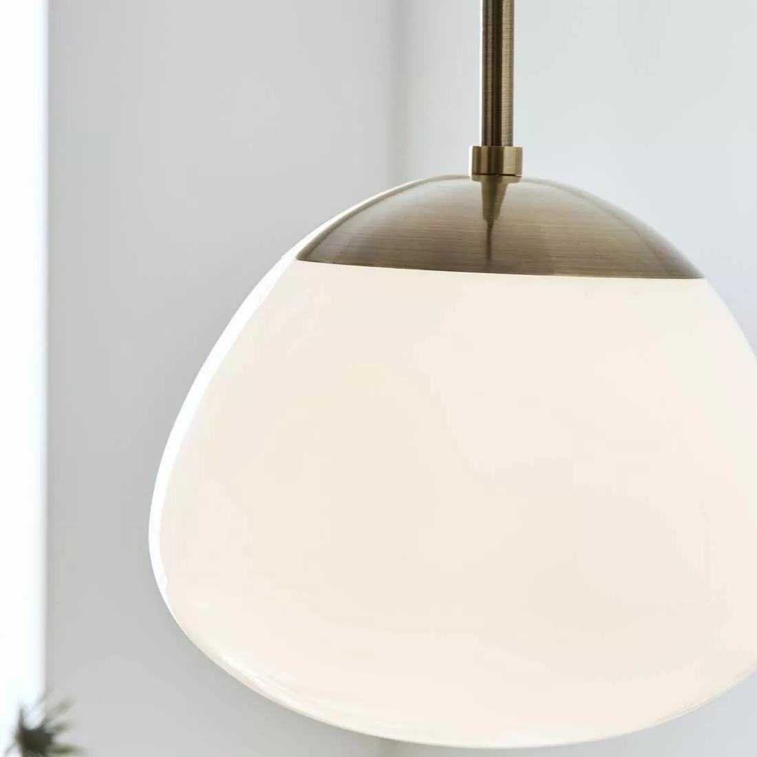 Taklampan Rise formgiven av Monika Mulder för Markslöjd har en opalvit kupa i glas som ger ett jämnt och diffusserat ljus i ett rum. Kupans skålade form ger ett modernt uttryck och en stilsäker takpendel. Rise har en värmande detalj i antikmässingsfärgad metall som omfamnar glaskupans övre del, samt en kabel i svart textil.