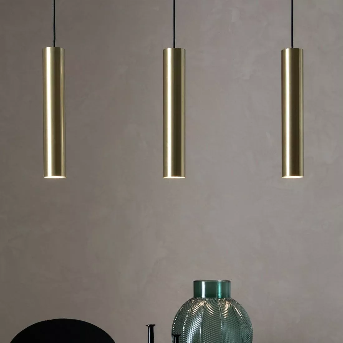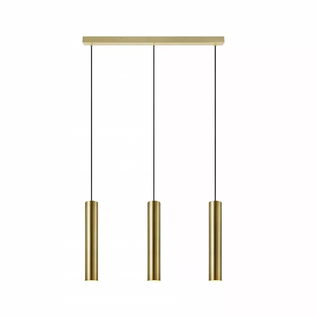 Taklampan Ruben är en mässingfärgad lampa med tre tuber där ljuskällan sitter i tuben och lyser nedåt. Ruben är snygg att hänga över ett matsalsbord eller en köksö. Eftersom ljuskällorna sitter i tuben blir de bländningsfria och diskreta. Varje kabel är 150cm och de är justerbara för rätt höjd.