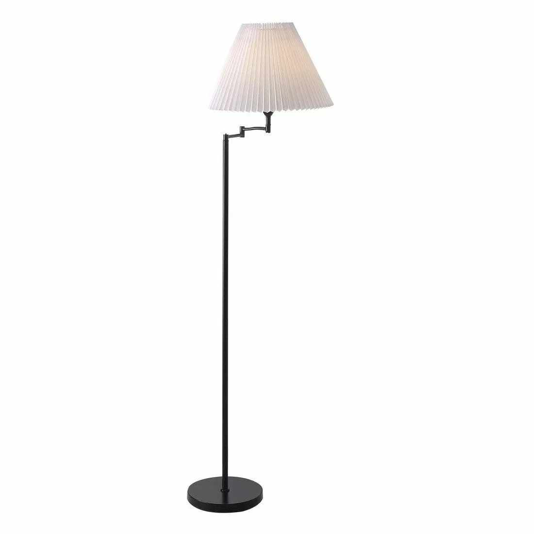 Break är en vacker och klassisk golvlampa med vit veckad lampskärm och fot i svart stål. Ett vackert tillskott till vardagsrummet.
