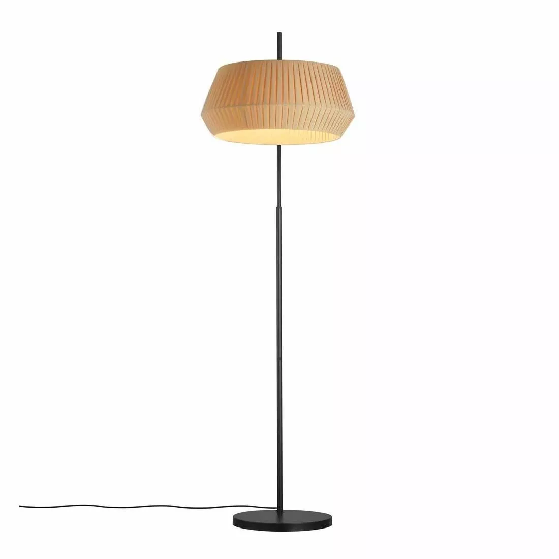 Golvlampan Dicte har ett svart böjt stativ med en vackert veckad skärm som ger ett klätt och mjukt intryck i ett rum. Skärmen är veckad med varsam hand och är ett hantverk i sig. Dicte gör sig ypperlig i vardagsrummet vid läsfåtöljen eller soffan och kompletteras med ljuskälla utefter behov.