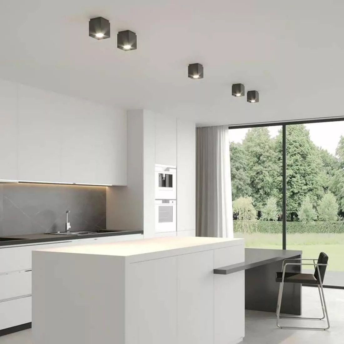 Ethan är en svart kubisk utanpåliggande takspotlight från Nordlux. Spotlighen har extra kabelingångar på två motsatta sidor för att möjliggöra ihopkoppling med flera enheter med fast installation eller utanpåliggande ledningar. Etan levereras med två medföljande reflektorer, svart och guld, att välja mellan. Armaturen har 1st GU10-sockel där du placerar en spotlight utefter behov. Dubbelisolerad med ojordad elanslutning.