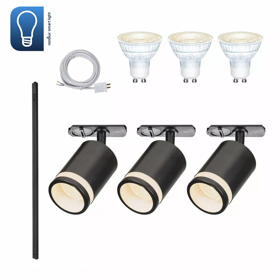Skeensystemet med tre stycken Link Rondie spotlights ingår det tre stycken smarta ljuskällor som du justerar in styrka och kelvingraderna via mobilen.