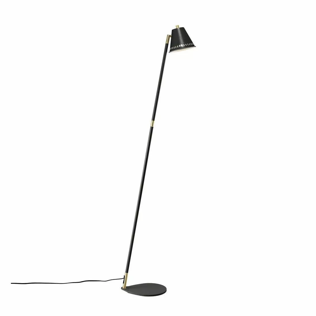 Pine golvlampa ingår i Pine-serien som är en dekorativ serie i industriell design, vilket skapar en vacker kontrast till den ljusa skandinaviska inredningen. Med sin kombination av matt metall och eleganta mässingsdetaljer får serien ett exklusivt uttryck. Med sina små hål i skärmens överkant och på sidorna erbjuder Pine en unik karaktär och en nyskapande ljusupplevelse, och den skapar en snygg effekt i ljuset när det sprider ut sig i rummet.