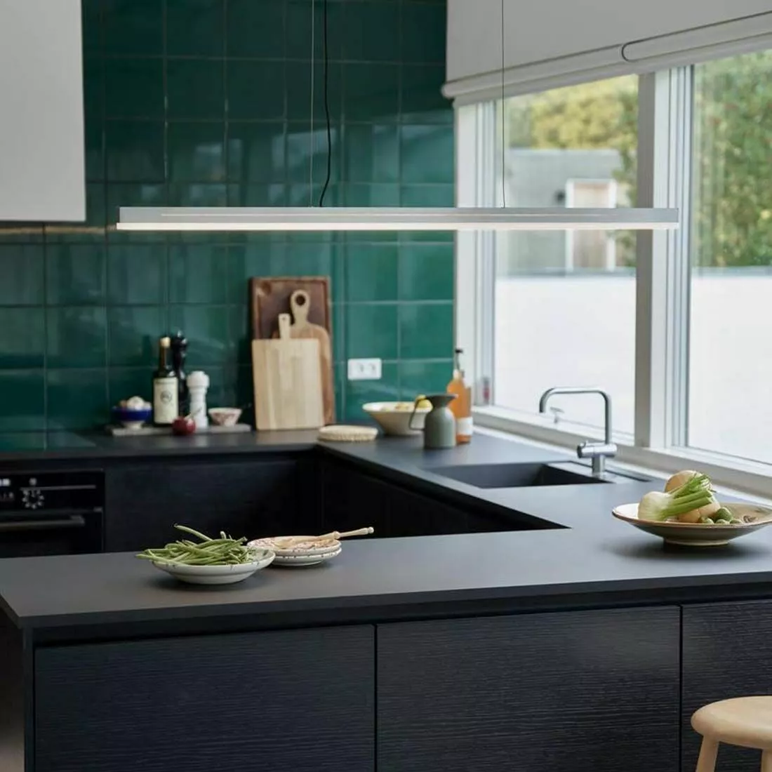 Takpendeln Skylar från Nordlux är en minimalistisk hängande ljusskena med integrerad led. Skylar placeras över matbordet eller köksön och ger ett bra arbetsljus och har samtidigt en smart inbyggt trestegsdimmer-funktion med ”moodmaker” som gör att du enkelt styr över ljusstyrkan med en vanlig strömbrytre. Moodmaker innebär att du kan välja mellan att ha både nedåtriktat ljus och sidoljus tänt, alternativt endast nedåtriktat ljus eller endast sidoljus. Dessutom har Skylar minnesfunktion som kommer ihåg din senaste dimmerinställning. Skylar monteras på medföljande takbygel och kan med fördel placeras som arbetsbelysning i konferrensrummet eller på kontoret.