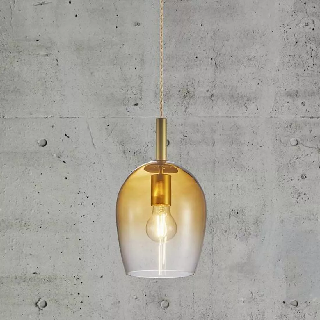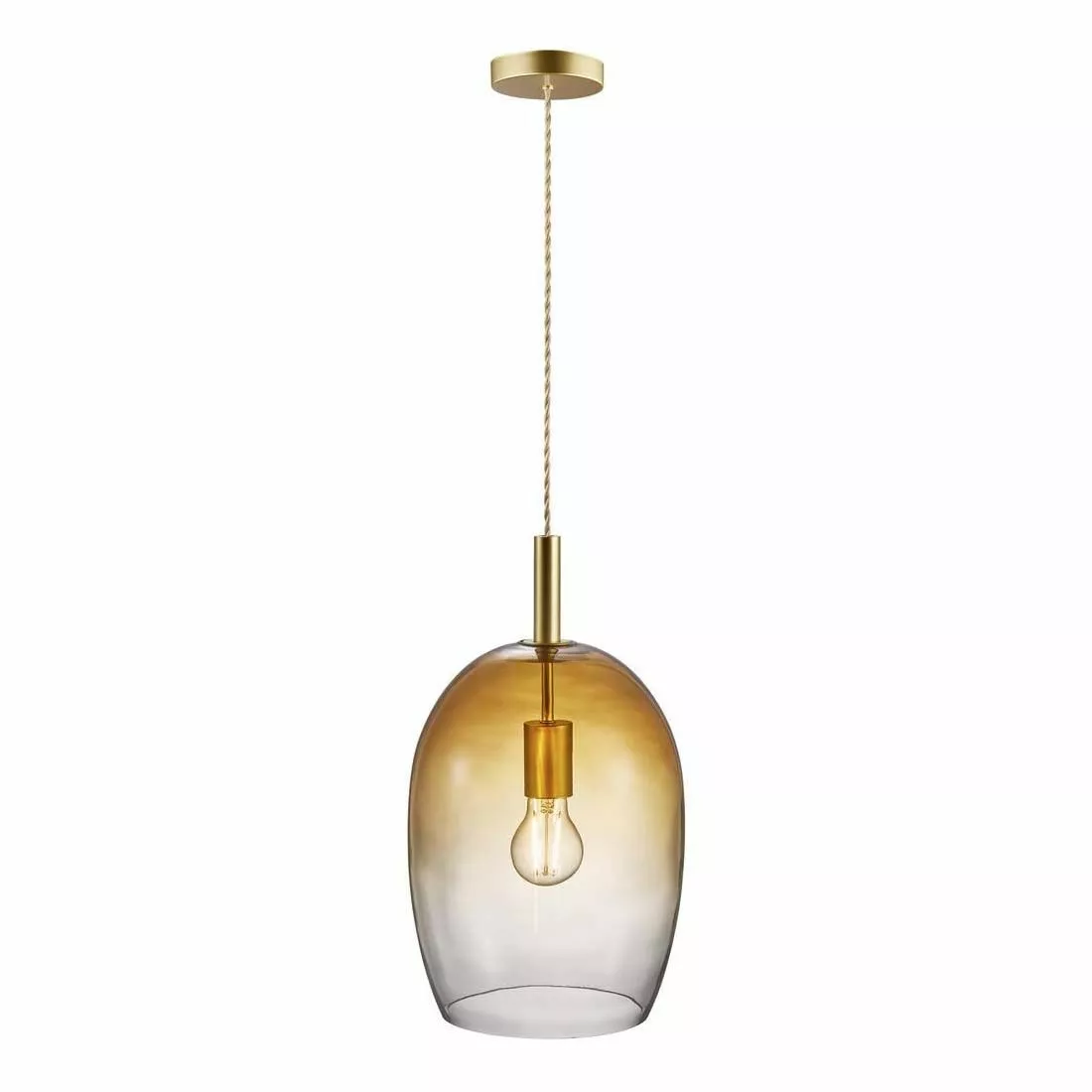 Taklampan Uma ger en modern och dekorativ touch till den klassiska pendeln och har en vackert tvinnad tygkabel. Den munblåsta klockade skärmen i gradvis ambertonat glas har en elegant, oval form som omfamnar ljuset på ett vackert sätt och skapar samtidigt ett mjukt, diffust ljus. Häng Uma som solitär, i par eller grupp i trappen, över köksön, matbordet eller vardagsrumsbordet. Belys ett mörkt hörn med Uma i olika storlekar för en modern och dekorativ känsla.