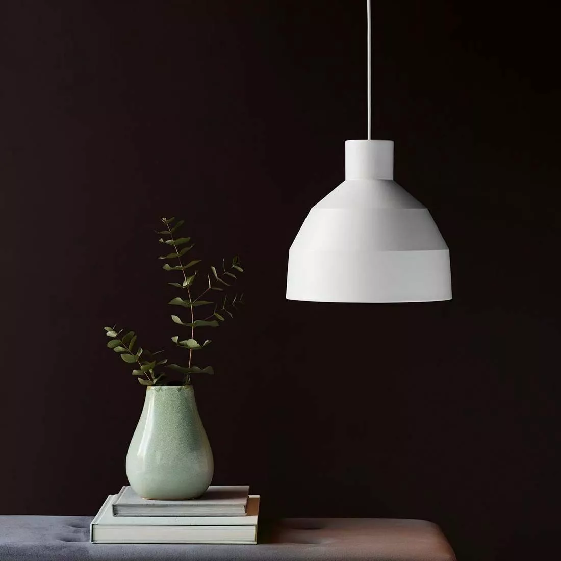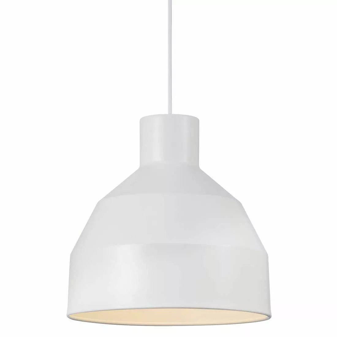 Vit taklampa i metall från danska Nordlux. Snygg taklampa att hänga över köksbordet eller i par över köksön.