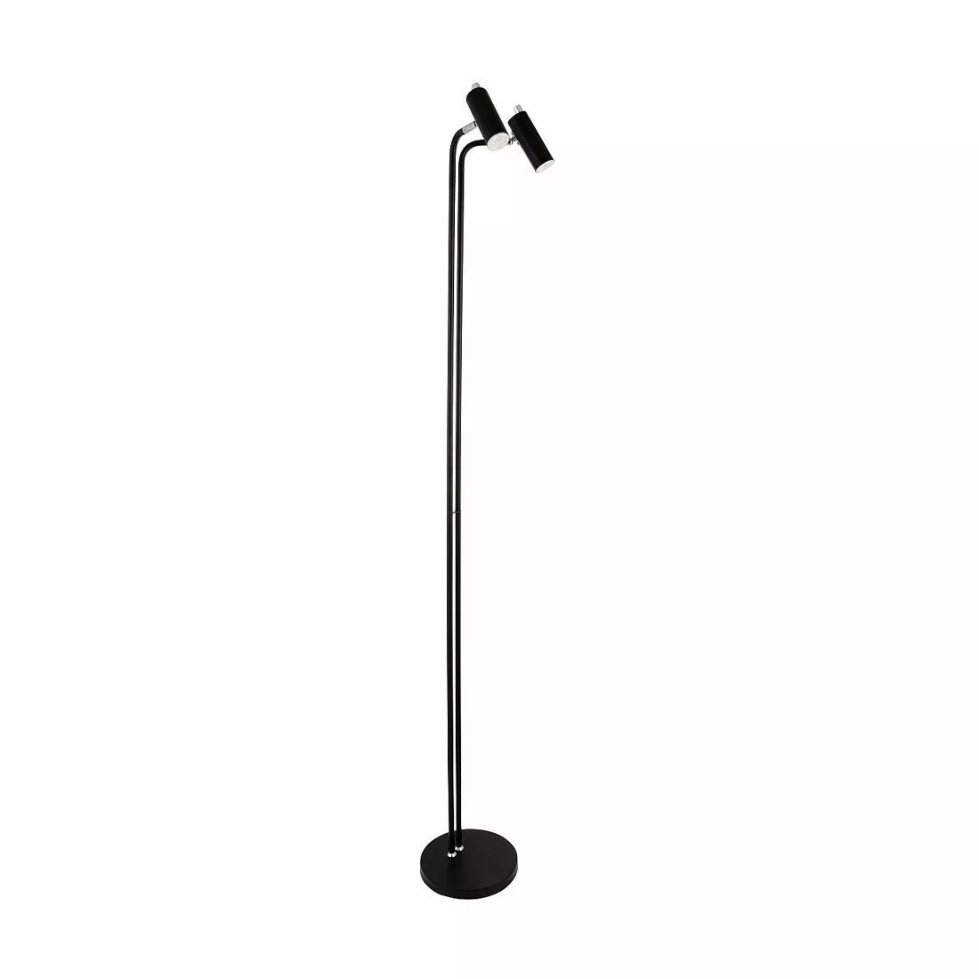 En smidig golvlampa med två stycken lamphuvud som du kan dimra genom att skruva på dimmer knappen som är placerad på lamphuvudet. Placera denna lampa mellan två fåtöljer eller mellan soffan och fåtöljen.