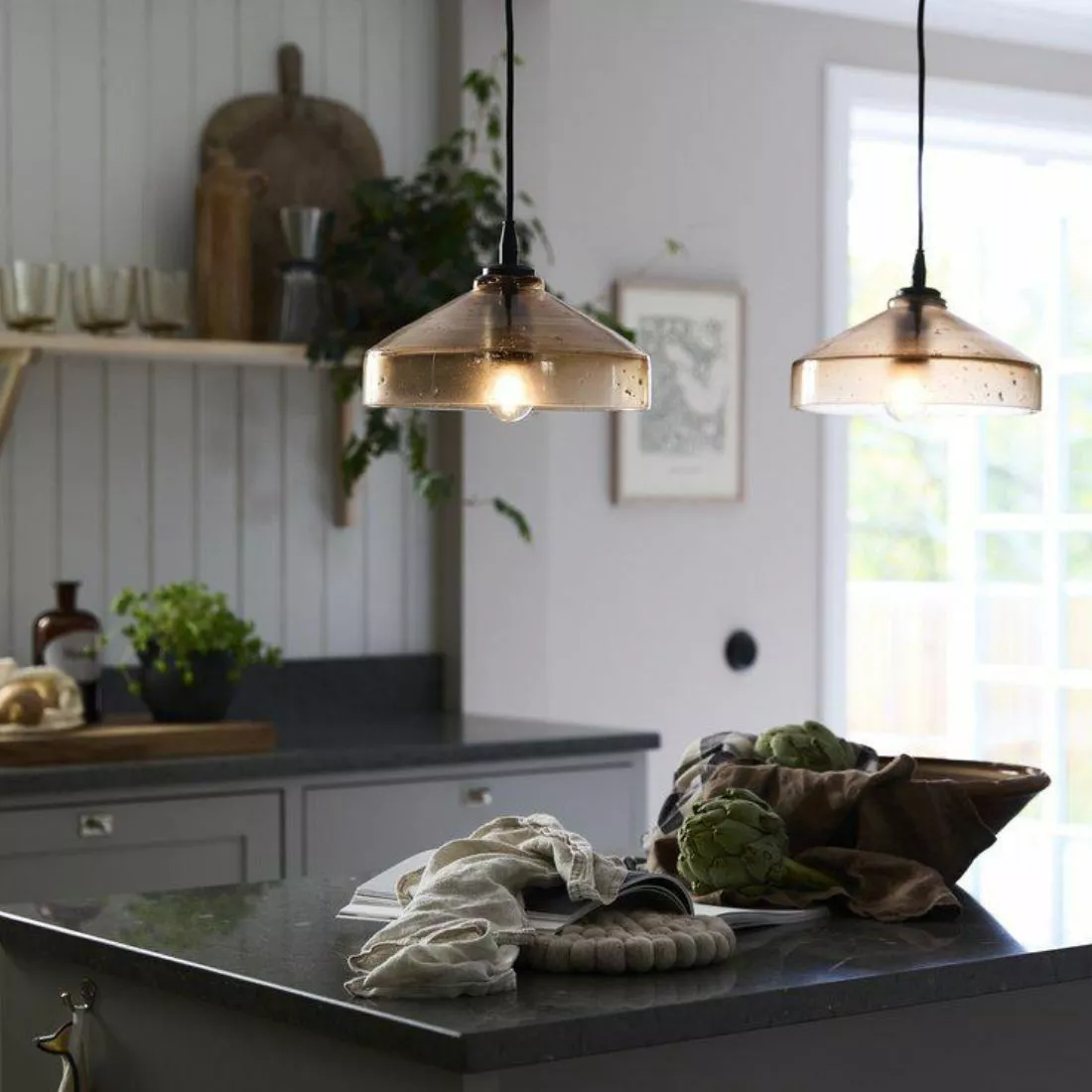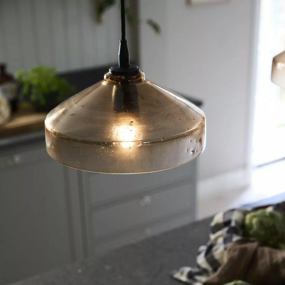 Cecil Taklampa i återvunnet glas. Lampan är handblåst och har en brun vintage finish. Det handgjorda glaset har ojämnheter och kan skifta i färg tack vare det återvunna glaset vilket gör varje lampa unik. Svart textilkabel med takkopp för krokupphäng i svart metall. Takkoppens diameter är 10cm. E27 sockel. Max 40W. IP20. Ljuskälla och takkontakt köpes separat. Diameter 25cm, höjd 23cm..