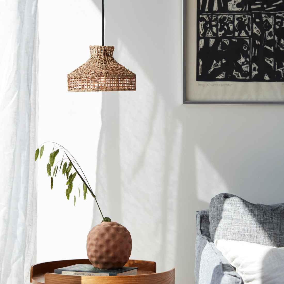 Tish lampskärm i handflätad lampakanay och naturrotting. Skärmen har ett modernt uttryck med sin något raka form och de vackert tvinnade detaljerna gör varje skärm unik. Då den är tillverkad i naturmaterial, kan det förekomma mindre storleksavvikelser samt att färgen kan förändras över tid. Lampakanay är ett slags kaveldun som har sitt ursprung från vass, och naturrottingen växer fritt i skogen och är skövlad utan påverkan på miljön. Diameter 22,5cm, Höjd 15cm. E27 toppring. Skärmen passar till takupphänge med E27 fäste samt vissa typer av bordslampa där man fäster lampskärmen ovanifrån. Ljuskälla E27 max 40W. Takupphänge och takkontakt köpes separat.