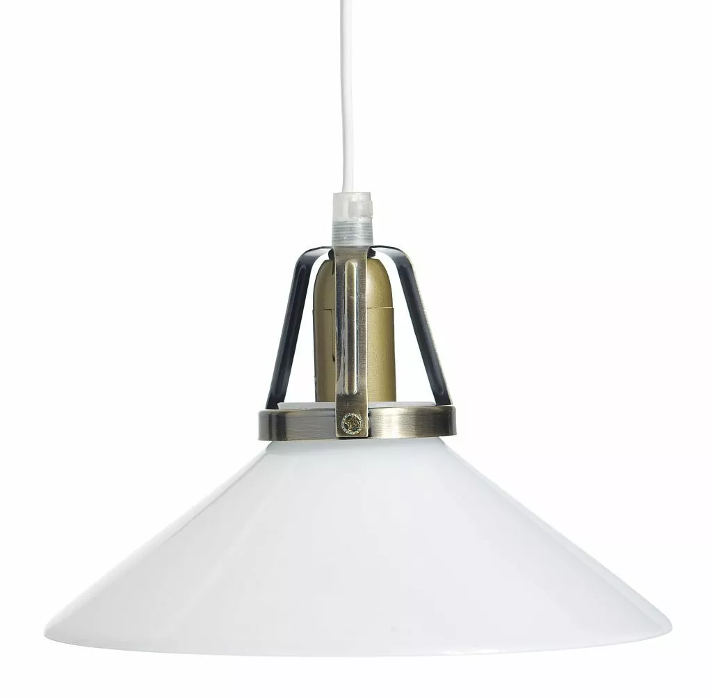 En klassisk skomakarlampa från Oriva i Takpendel. Armaturen har ett opalfärgat glas som ger ett behagligt ljus. Tillsammans med ett vackert mässingsfärgat antik upphäng.