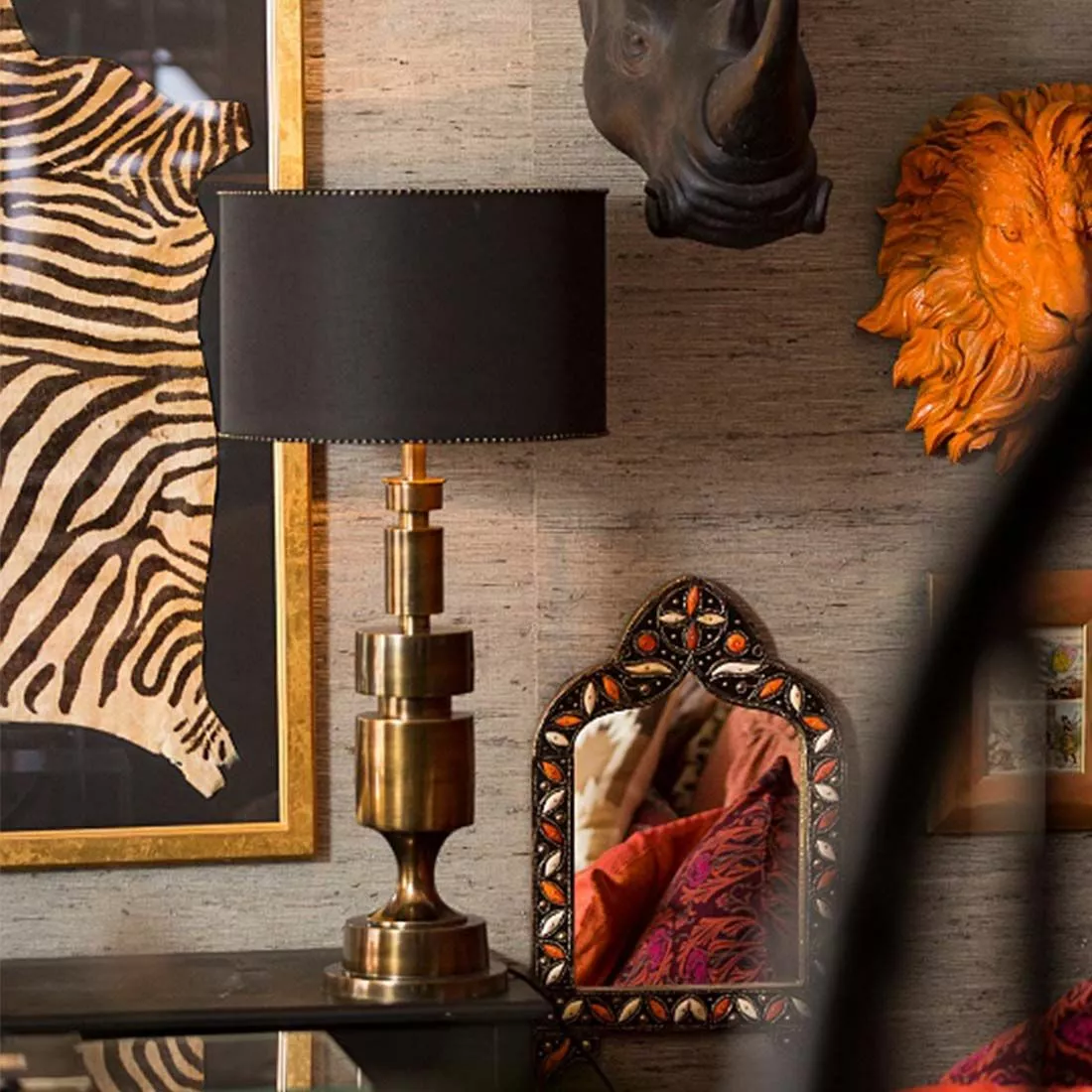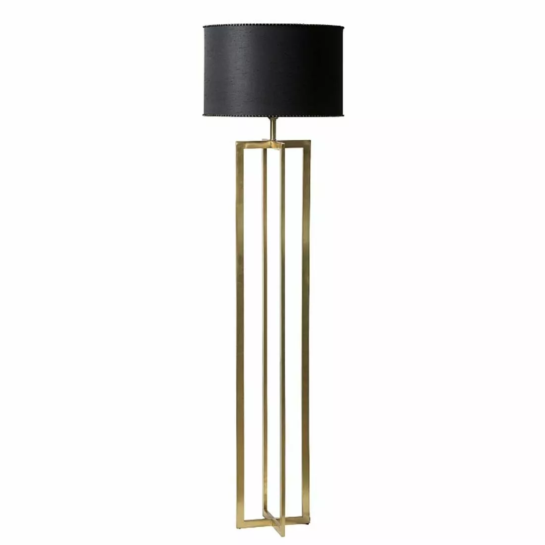 Svart stor cylinderlampskärm i vackert svart satintyg med en guldfärgad insida och dekorativa nitar. Lampskärmen kommer från Watt&Veke som är välkända för sina välarbetade och lyxiga lampskärmar.